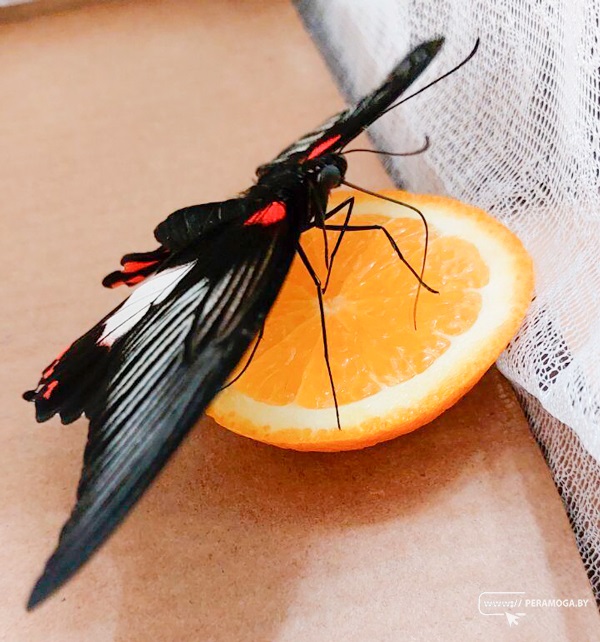 – Наши бабочки из семейства парусников – Полит, Лови, Румянцева. В интернете узнали, что Лови является одной из самых крупных азиатских парусников, её размер составляет 11-14 см. Расцветка у всех разная, очень красивая и яркая. Они почти ручные и легко садятся на ладонь. Особого ухода не требуют, кормить можно сахарным сиропом или сочными фруктами. У нас в качестве еды – апельсин, – продолжает Ольга. – Безусловно такой подарок нас впечатлил. Жаль только срок жизни бабочек, как и у цветов – как правило, составляет 7-15 дней, некоторые виды могут прожить до месяца.