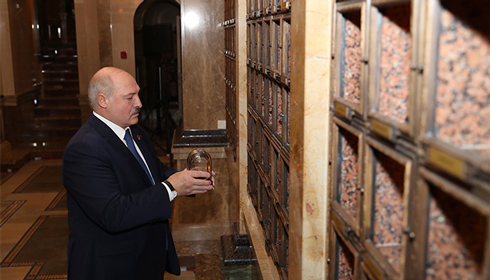 Президент Беларуси Александр Лукашенко принял участие в торжественной церемонии закладки капсул с землей, собранной в местах воинской славы и гибели мирного населения, которая проходила 8 мая в Минске в храме-памятнике в честь Всех Святых и в память о жертвах, спасению Отечества нашего послуживших, сообщили в пресс-службе Главы государства.