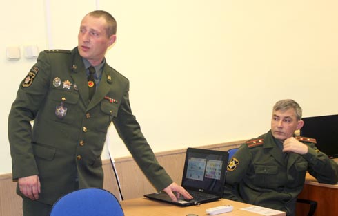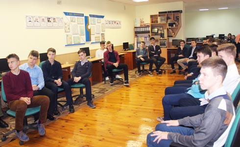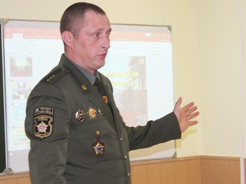 Представитель Военной академии Республики Беларуси сотрудник факультета военной разведки Александр Трифонов познакомил учащихся выпускных классов со специальностями, по которым ведет подготовку военный ВУЗ, с условиями обучения и быта для курсантов.