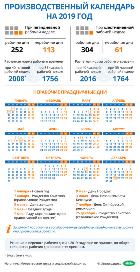 Решение о переносе рабочих дней в 2019 году еще не принято, но общее количество рабочих дней останется прежним.