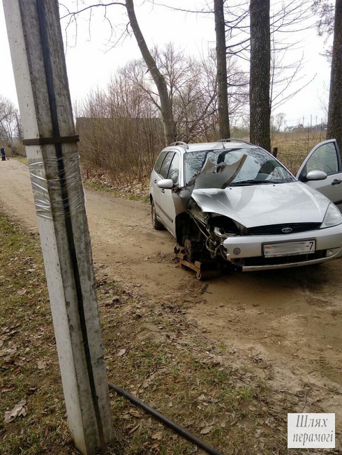 Водитель-минчанин на автомобиле «Форд Фокус» ехал с рыбалки. В деревне Вязынь решил заехать в местный магазин, но не справился с управлением и врезался в ЛЭП.