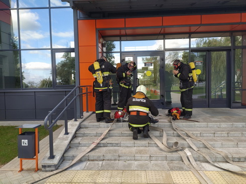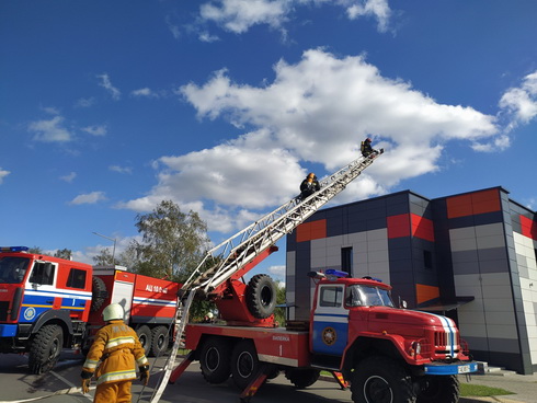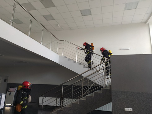 Была отработана вводная о возгорании на втором этаже с вероятным выходом пламени на кровлю и задымлении на центральной лестнице, проведена эвакуация и проверена система пожарной автоматики.