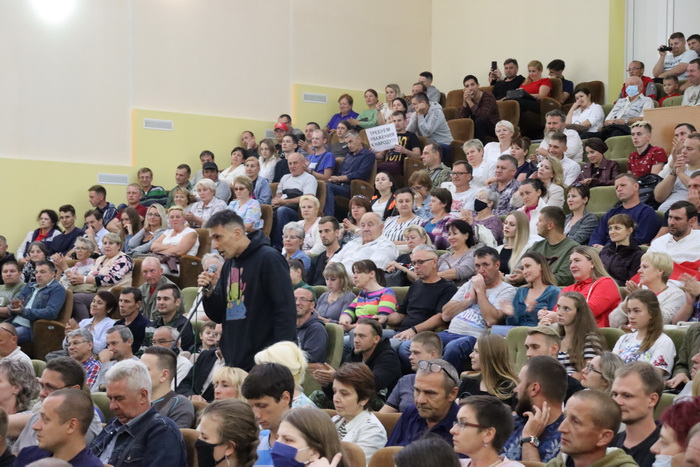 Начиная встречу с вилейчанами, которые собрались во Дворце культуры председатель райисполкома Олег Бегунец отметил: «Давайте сегодня попытаемся услышать друг друга. Я не пришёл сюда выяснять кто прав, а кто виноват — я хочу мирного и конструктивного диалога».