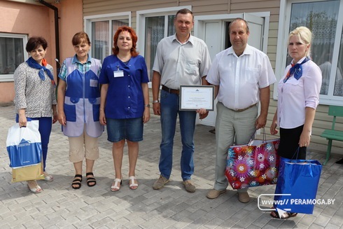 В преддверии юбилейной даты – 100-летия — все представительства Белгосстраха по Минской области посещают дома-интернаты для престарелых и инвалидов. Так, сегодня представители вилейского Белгосстраха – директор Андрей Челядинский и его заместитель Оксана Коршикова — вручили сертификат на сумму в одну тысячу белорусских рублей и сладости Куренецкому дому-интернату для престарелых и инвалидов. Не осталась в стороне и их первичная профсоюзная организация: председатель Лариса Галко передала средства личной гигиены и индивидуальной защиты для постояльцев.