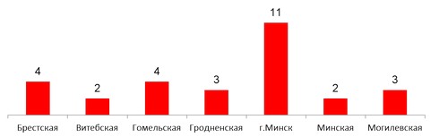 Число театров по областям и г.Минску в 2018 году (на конец года)