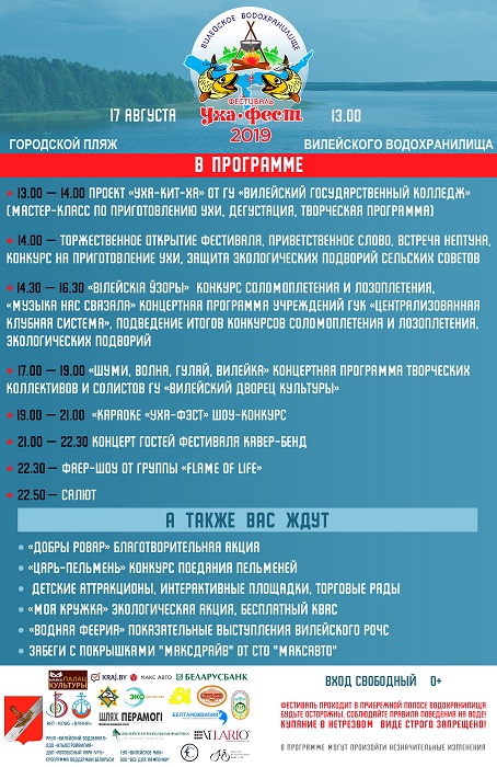 Стала известна программа фестиваля «Уха-фест-2019», что пройдёт на Вилейском водохранилище 17 августа