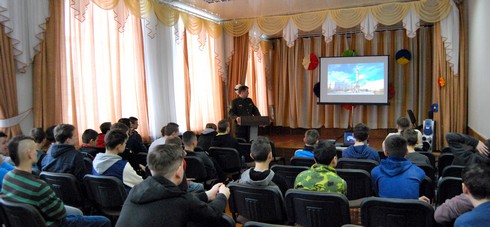 Сапраўдны патрыятычны «Урок мужнасці» для старшакласнікаў правёў ваенны камісар раённага камісарыята падпалкоўнік Юрый Ганчыеўскі. Сваю сустрэчу з хлопчыкамі Юрый Іванавіч прысвяціў тэме 100-годдзя Узброеных Сіл Рэспублікі Беларусь, а таксама распавёў выхаванцам інтэрната пра станаўленне беларускай арміі, пра вехі ў яе гісторыі, удзеле беларусаў у баявых дзеяннях падчас Вялікай Айчыннай вайны і многім іншым. Дзецям быў паказаны фільм пра армію і пра тое, як важна будучым пакаленням захоўваць мірнае неба і аберагаць спакой грамадзян. З вялікай увагай дзеці слухалі Юрыя Іванавіча, а таму пасля яго выступу пасыпаўся шэраг пытанняў. Хлопчыкі цікавіліся знакамі адрознення, як вызначаць воінскае званне па пагонах і многім іншым.