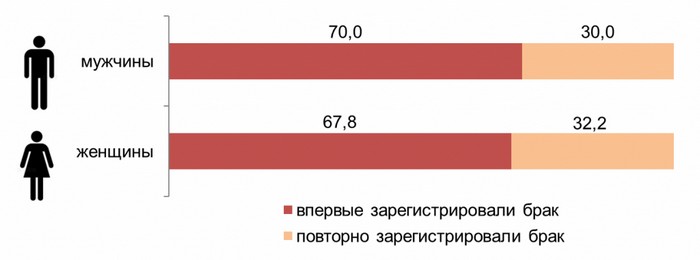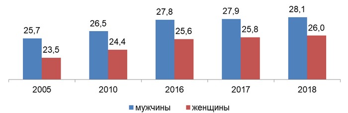 Решение о вступлении в брак граждане нашей страны с каждым годом принимают в более зрелом возрасте. Так, в 2018 году средний возраст вступления в первый брак у женщин составил 26 лет, у мужчин – 28,1 года.