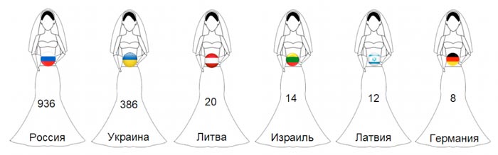 Количество невест из других стран, вступивших в брак с белорусскими мужчинами в 2018 году
