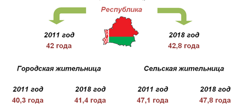 Средний возраст женщин на начало 2018 года составил 42,8 года. Причем в городах женское население значительно моложе, чем в сельской местности.