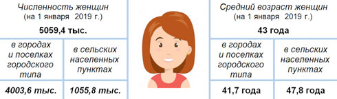 Численность женщин в репродуктивном возрасте (15 – 49 лет) составила 2198,1 тыс. человек, или 43,4% от общей численности женщин. В наиболее активном детородном возрасте 20 – 34 лет находились 949,4 тыс. женщин, или 43,2% от числа женщин репродуктивного возраста.