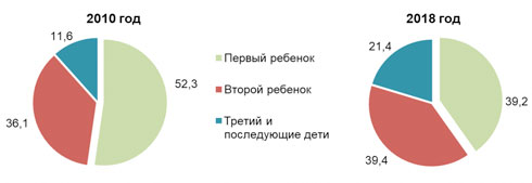 Удельный вес детей по очередности рождения (в процентах к общему числу родившихся)
