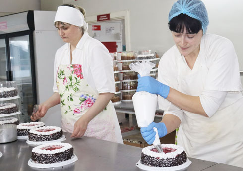 – Никакого колдовства – только профессиональные навыки и старание, а ещё – настроение, – раскрывает секрет мастер кондитерского цеха Екатерина Невская. – Команда у нас сплочённая и дружная. Людмила Субоч, Наталья Волхонская, Мария Широчина, Ирина Лабецкая, Ольга Чечулина – кондитеры опытные, своё дело знают. Постоянно обновляется ассортимент продукции – на прилавках магазинов появляются торты с новыми названиями и по новой утверждённой рецептуре. Популярностью пользуются наши «Шоколадный сюрприз», «Бисквитный шоколадно-банановый вкус», «Капучино творожный». И другие торты тоже находят своего покупателя.