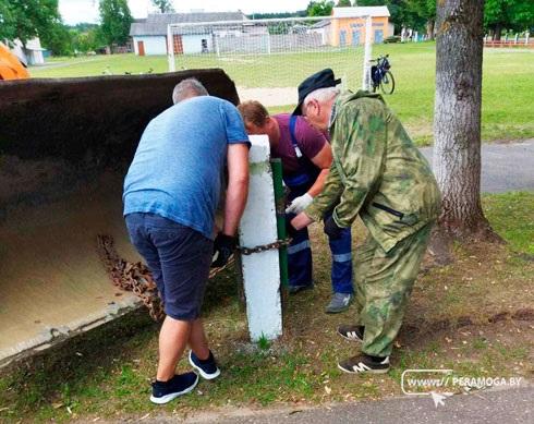 А работу тракториста ДЭУ Юрия Гакутя можно назвать «ювелирной»: ни один кустик, ни один цветок, ни одно деревце не пострадали, когда Юрий Станиславович вытягивал из земли бетонные столбы.