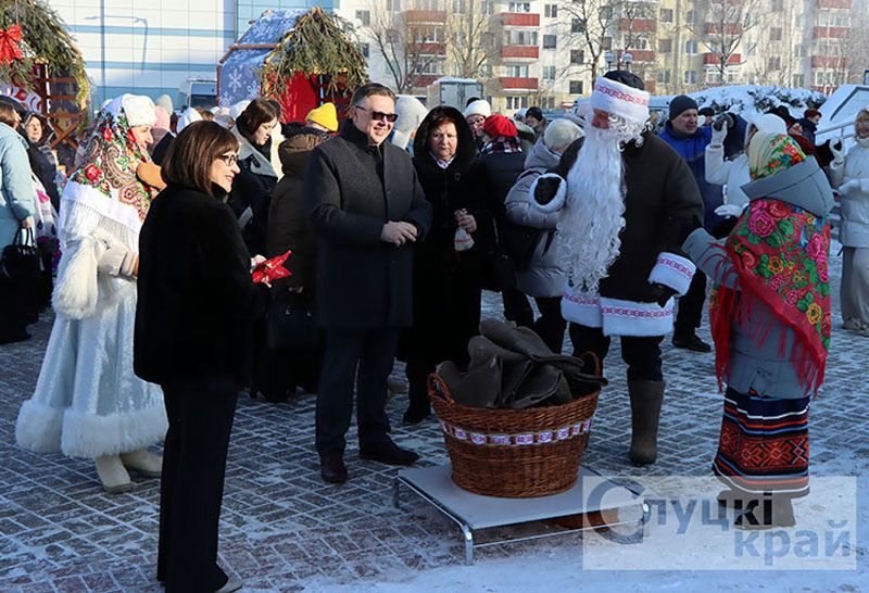 Возле Дома культуры работали интерактивные площадки: можно было поиграть в снежки, посоревноваться в метании валенок, выиграть сладкие призы, мягкие игрушки, познакомиться с работами мастеров декоративно-прикладного творчества. Встречал гостей Зюзя.