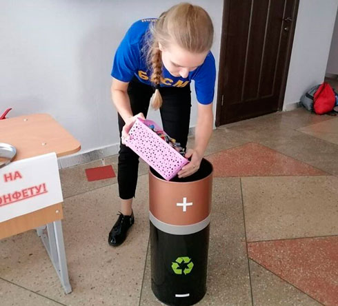 В средней школе №5 г. Вилейки провели мероприятие по сбору использованных батареек, а чтобы ребята активно приняли участие батарейку меняли на конфету. И не прогадали. Экологическая акция «Меняй батарейку на конфету» прошла успешно: за день ушло 6 кг конфет, урна заполнилась батарейками до отказа.