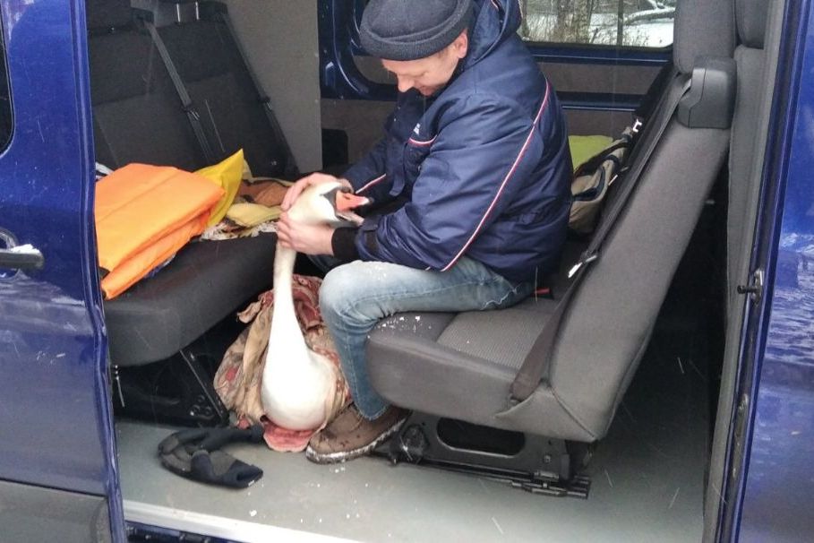 — В среду 2 декабря в инспекцию позвонила жительница микрорайона, и попросила спасти лебедя. На пруду он обитал еще с лета, но с приходом заморозков водоем начал замерзать. Выяснилось, что у лебедя травмировано крыло: вероятно, весной он ударился о линии электропередач и из-за травмы не смог перелететь на другой водоем, а в замерзающем пруду мог погибнуть.