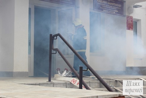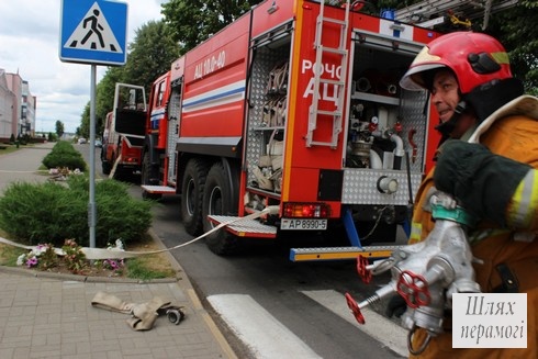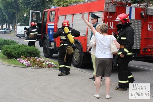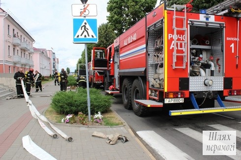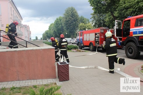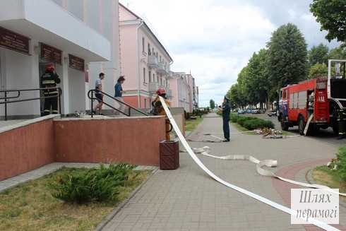 Сегодня, 22 июня, в здании по улице Партизанская, 44 произошёл «пожар» – проводились учения по отработке действий работников организаций, расположенных в этом здании и служб спасения во время внештатной ситуации – пожара на первом этаже.