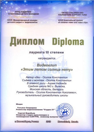 Среди 13 конкурсантов, участие принял и Константин Осипов, музыкальный руководитель  средней школы №3 г. Вилейки, который предоставил видеоклип «Этим летом солнца нету» в исполнении юной вилейчанки Надежды Ахрем.