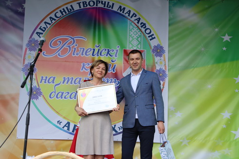 В Вилейке мероприятие началось торжественно: эстафету фестиваля главный специалист главного управления культуры Минского облисполкома Роман Мамченко передал заместителю председателя Вилейского райисполкома Людмиле Слепцовой.