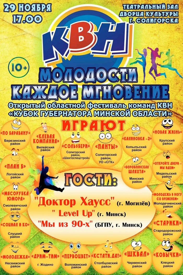 29 ноября во Дворце культуры Солигорска пройдет открытый областной фестиваль команд КВН «Кубок губернатора Минской области».