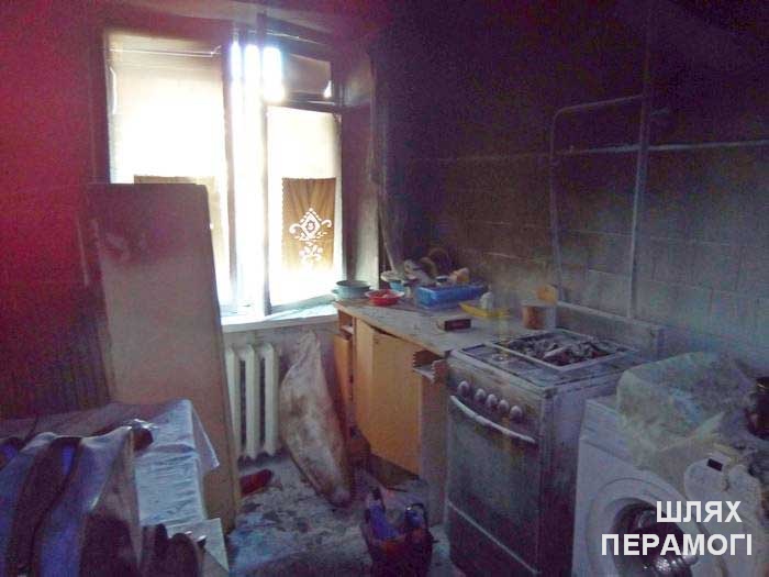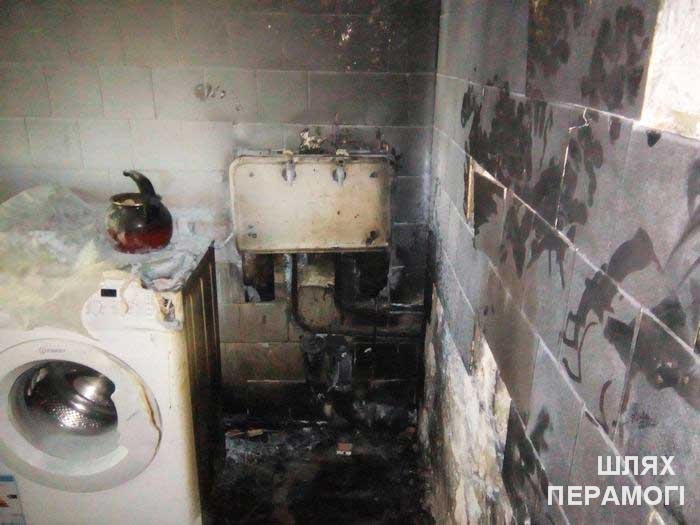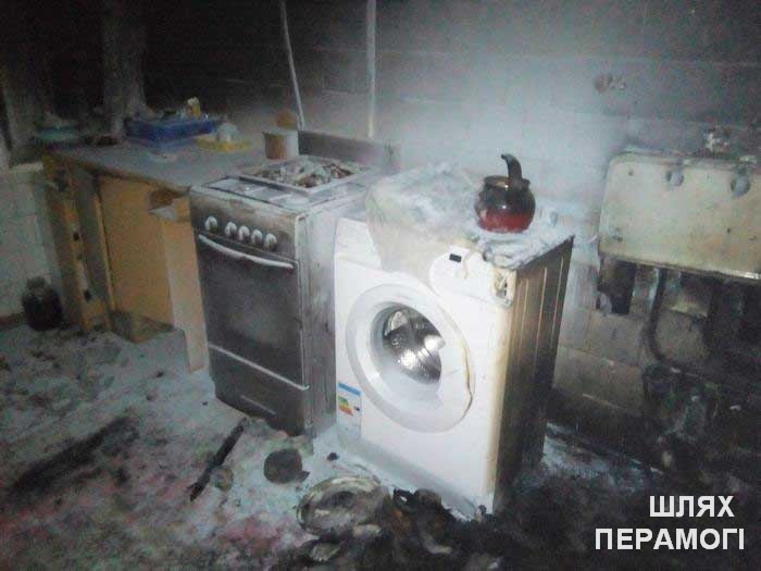 В результате уничтожен кухонный шкафчик под мойкой, повреждена стиральная машина, закопчены стены и потолок.