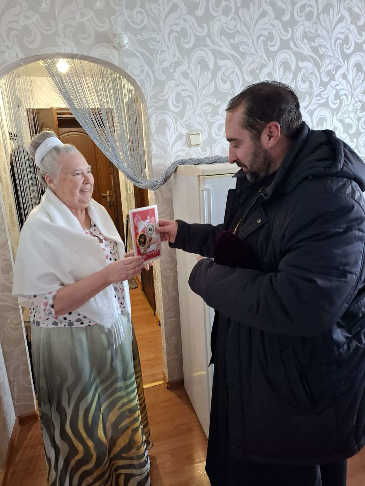 11 января настоятель прихода храма преподобной Марии Египетской протоиерей Вячеслав Вабищевич вместе с клириками храма – протоиереем Сергием Вачуговым и иереем Дмитрием Власенко – навестили пожилых прихожан. Из-за преклонного возраста они не могут сами приходить на богослужения. Священники лично поздравили их с Рождеством Христовым, побеседовали и поддержали добрым словом.