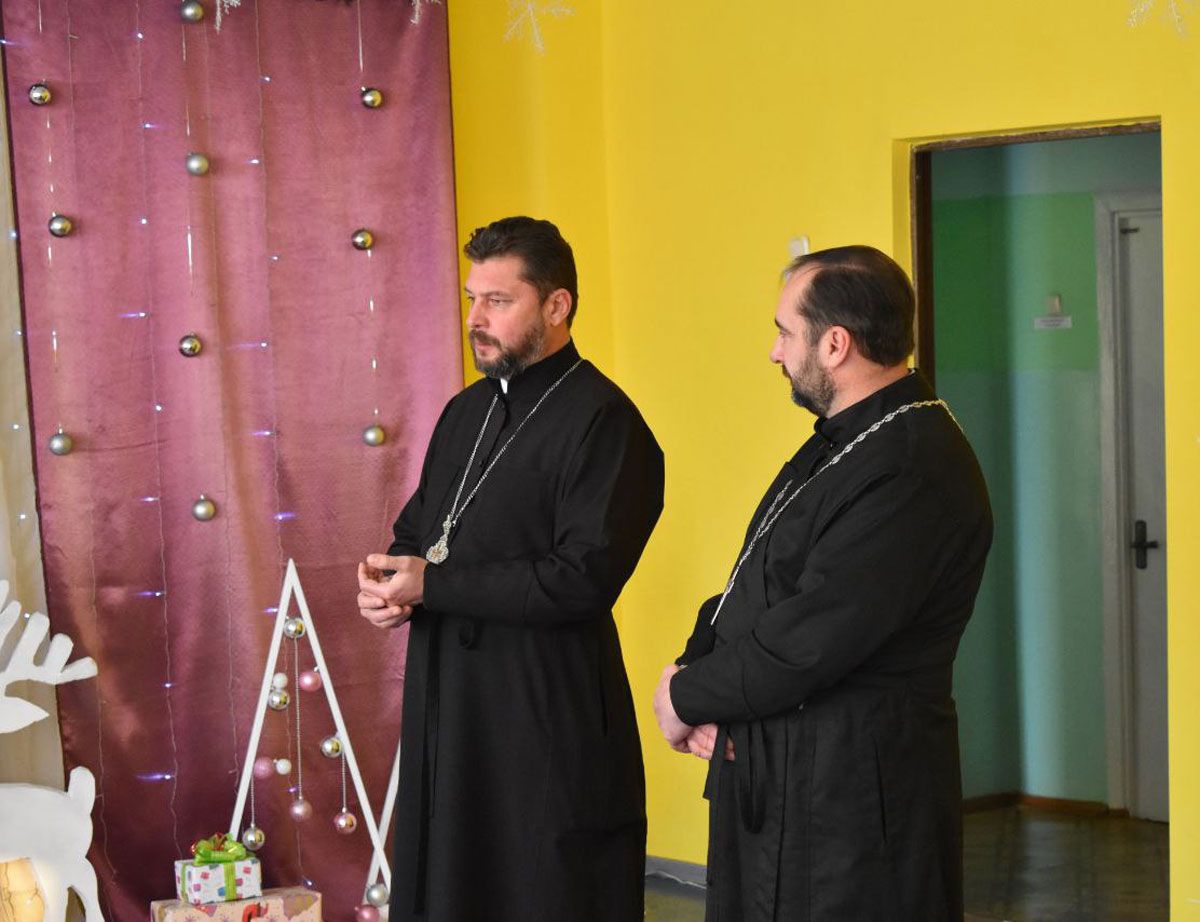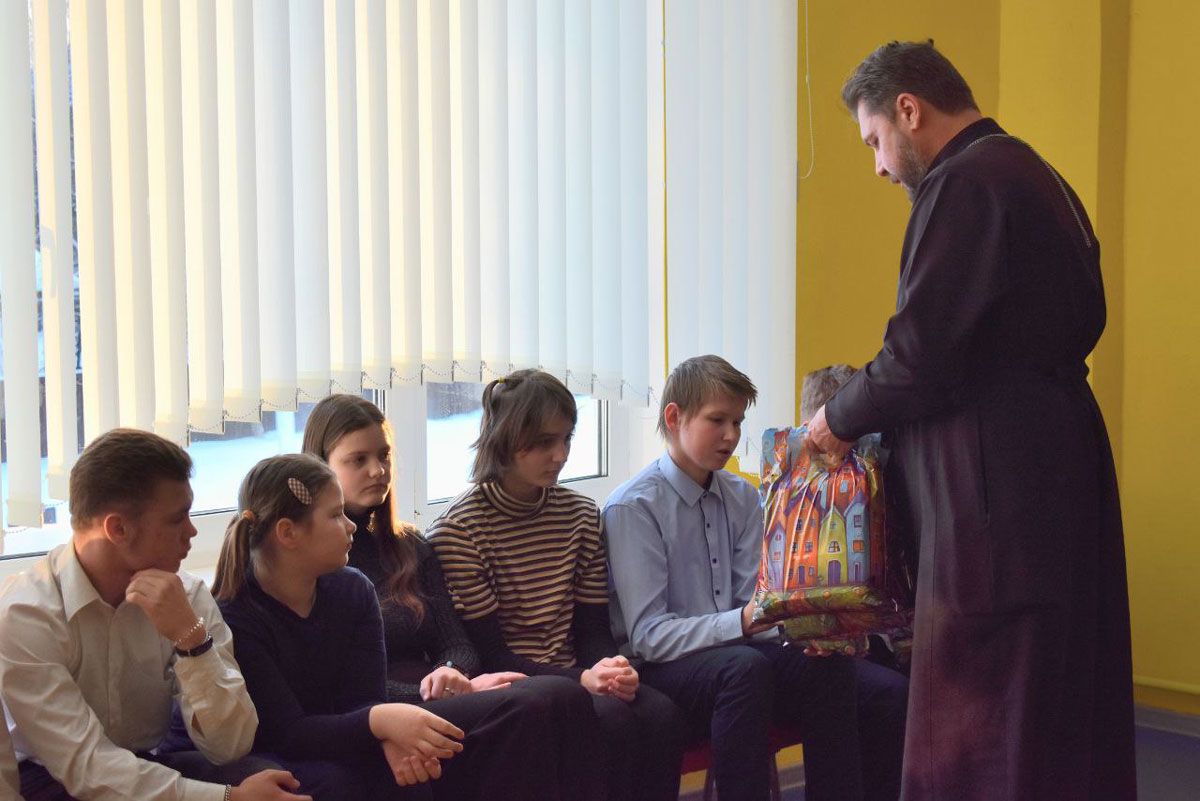 Они поздравили воспитанников и педагогов с Рождеством. Протоиерей Сергий Вачугов в доступной и увлекательной форме рассказал детям смысле и традициях праздника. За теплой беседой последовало вручение подарков.