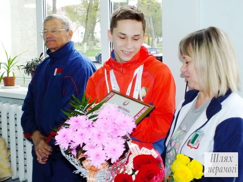 25 апреля в Вилейской специализированной детско-юношеской школе олимпийского резерва собрались представители районной администрации, отдела образования, спорта и туризма райисполкома, руководство, тренеры и воспитанники спортивной школы, чтобы поздравить двукратного чемпиона Европы по прыжкам на батуте, мастера спорта Республики Беларусь, члена основного состава национальной команды Республики Беларусь по прыжкам на батуте, воспитанника СДЮШОР Вилейского райисполкома Ивана Литвиновича, а также его тренера Петра Ивановича Зайцева и маму – Татьяну Александровну.