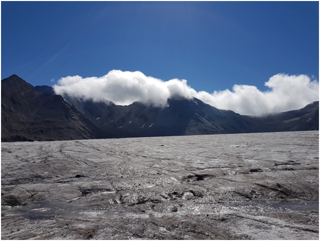 На спуске не хотелось спешить, а просто идти, осматриваться и наслаждаться моментом. Кругом ведь так здорово! Мы над облаками, на склоне Эльбруса, видны повсюду снежные шапки гор. Шли и впитывали в себя каждую секунду, каждый миг, каждый солнечный лучик.