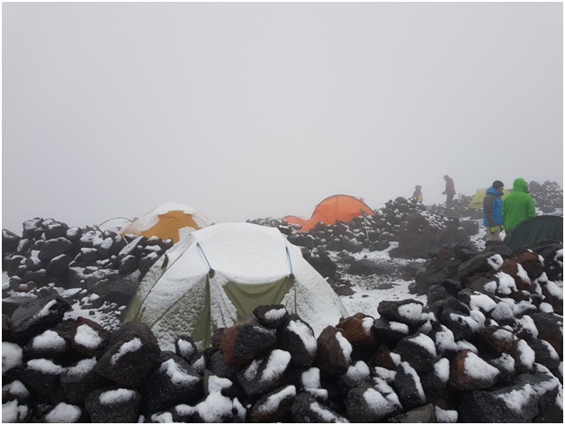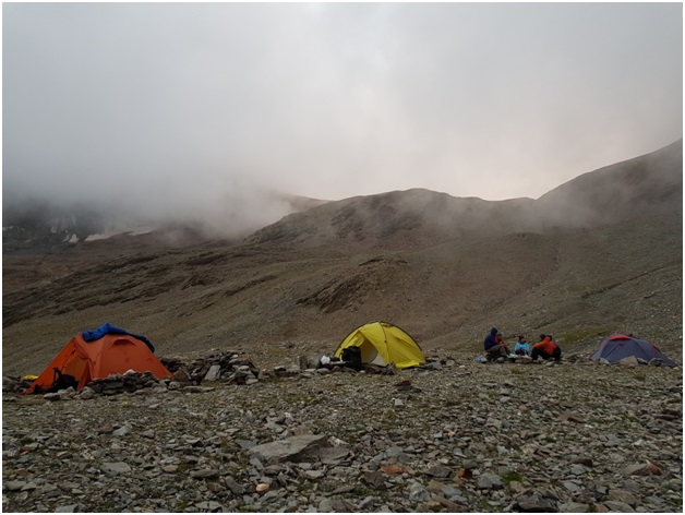 Этой ночью просыпался каждый из нас, и отнюдь не из-за «горняшки» (горная болезнь). Погода испортилась. Дул сильный ветер. В спальниках лежали в куртках, только нос торчал, но не мерзли. Палатка ходила ходуном от порывов ветра. Вспоминала, насколько крупные камни использовали для закрепления палатки. Надеялась на то, что выдержат, выходить на улицу совсем не хотелось. Не хотелось высовывать нос дальше спальника. Нам оставалось только слушать и ждать. К середине ночи ветер утих.