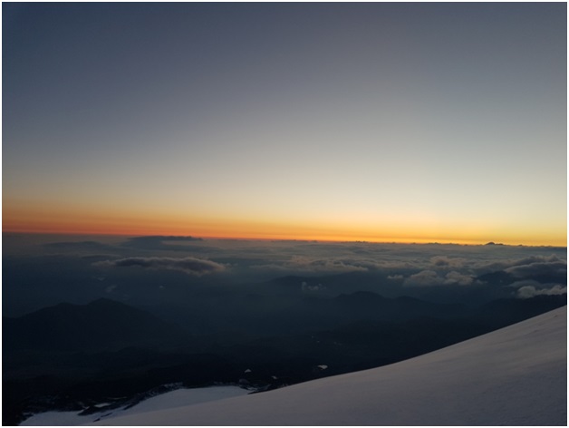 Погода целый день держалась нелетная, вернее неходовая. Прогнозы большинства на следующие дни не радовали. Люди говорили, что будет только хуже. А если так, то это значило, что для нас седоглавый Эльбрус будет закрыт и надо будет идти вниз. Внутри от таких прогнозов была еще большая непогода. Но погода – это тот фактор, на который мы не можем повлиять. Прогноз некоторых ребят все-таки обещал окно на следующую ночь. Это давало нам надежду. С надеждой и своими мыслями каждый из нас провел остаток дня. Вечером мы по-прежнему были в облаке, холодно не было, ветер не дул. Руководитель сказал подготовиться к выходу, а там будем решать по погоде. В восемь вечера мы пошли складывать штурмовые рюкзаки. В девять уснули. Будильник по договоренности поставили на полночь.