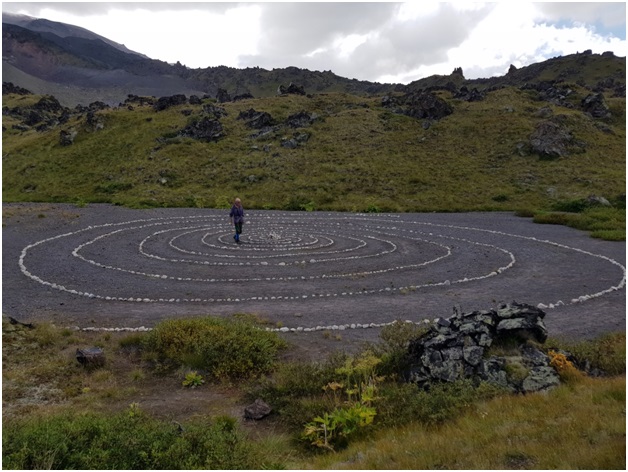 Ручей, из которого мы набирали воду пару дней назад, почти полностью пересох, хотя был он достаточно полноводным. Это горы, где все живое и все живет. На пути возле «Немецкого аэродрома» мы нашли два лабиринта. Считается, что, когда проходишь лабиринт, нужно задавать вопросы, которые тебя волнуют, спрашивать совет, и ответ придет или, пока ты идешь по лабиринту, или в ближайшее время. Надеюсь, найду ответы на свои вопросы.