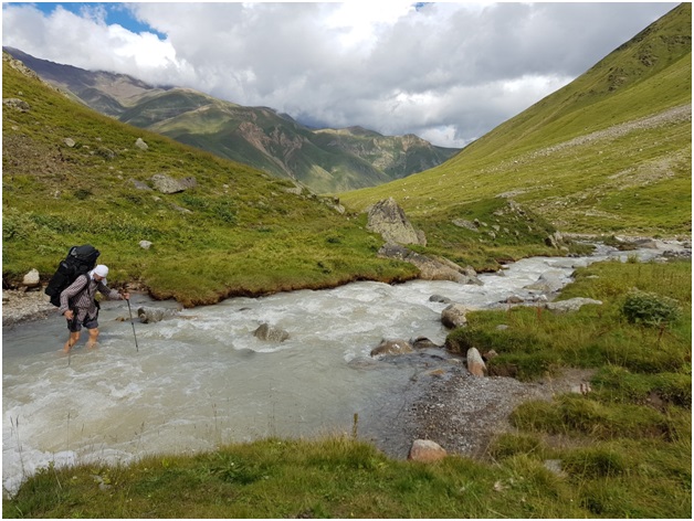 На слиянии рек Мкяра и Субаши, где мы разбили лагерь, в глаза сразу бросился разный цвет рек: Мкяра очень мутная, а Субаши чистая. Здорово увидеть подобное явление в живую. Решили окунуться в горной речке Субаши. Что и говорить, водичка освежающая!