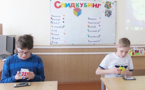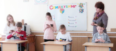 В нашем городе кубик Рубика еще не так популярен, но, как оказалось, в наших силах его популярность развить. Идея проведения в гимназии соревнований по сборке кубика Рубика – спидкубингу – принадлежит директору гимназии Александру Волку. Идею поддержали – и 7 апреля такие соревнования провели. Решились принять участие самые смелые и решительные спидкуберы – 12 учащихся из 4-11классов. Среди них одна девушка – Анастасия Лях, ученица 11 “Б” класса. Соревнующихся разделили на две возрастные категории: 4-7 классы и 8-11 классы.