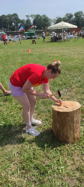Участников конкурса ожидало много разных интересных испытаний: они креативно представили свою хозяйственность и гостеприимство в конкурсе визитных карточек «Знаёмімся», все семьи организовали свое мини-подворье, ну и, конечно, продемонстрировали силу, ловкость и скорость в рубке и складировании дров. А в необычном конкурсе «Гаспадар i гаспадыня» муж и жена поменялись обязанностями – жена забивала гвозди, а муж пеленал «ребёнка» . Также каждая семья-участница прошла интеллектуальную викторину.