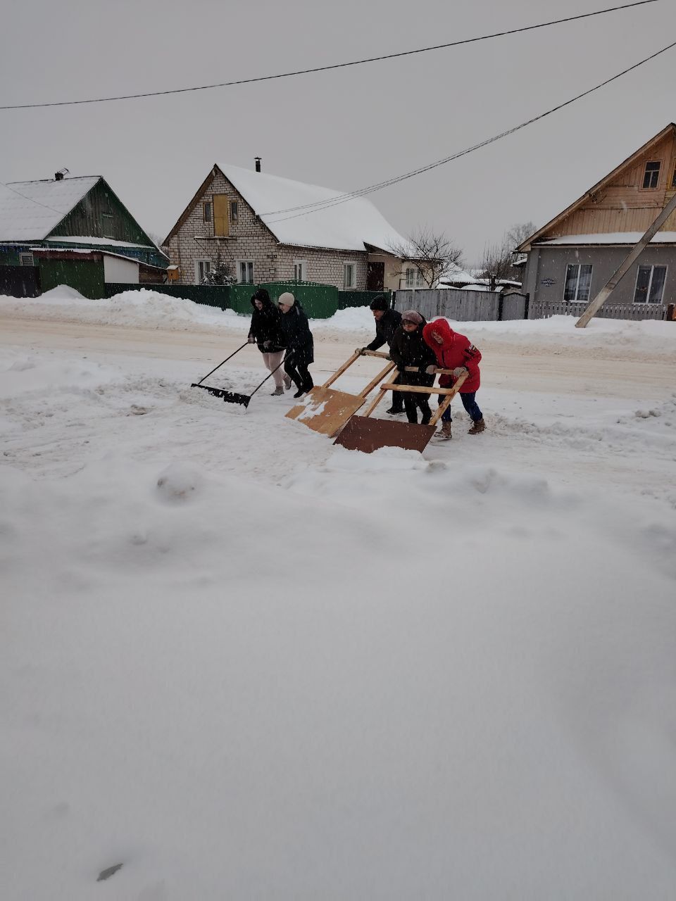 Работники гимназии №1 «Логос» вышли на помощь коммунальным службам в уборке прилегающей территории от снега.