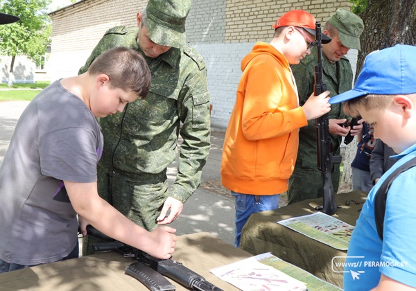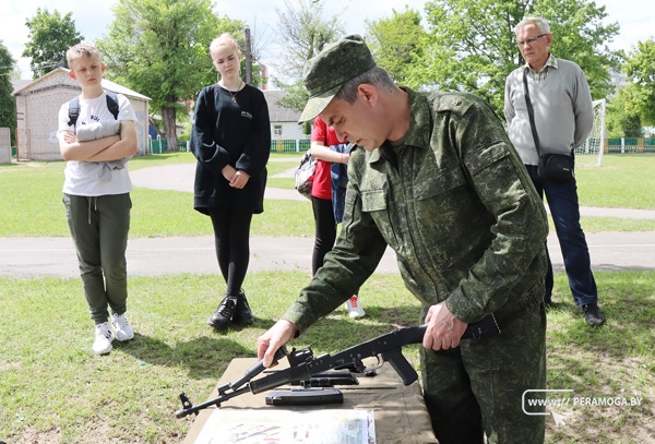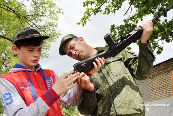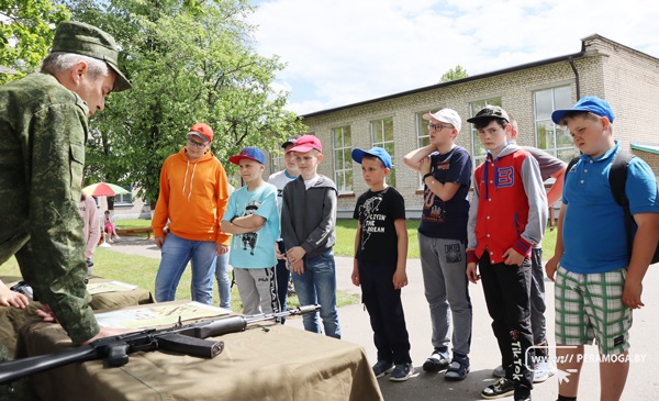 В оздоровительном летнем лагере школы №3 в рамках проведения с 1 по 7 июня в учреждениях образования Минской области учебно-полевых сборов прошел урок мужества. Мероприятие провели представители Вилейского военкомата, которые показали своё мастерство в сборке и разборке автомата.