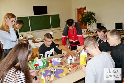 Декоратор, художник Мария Артемчук вместе с детишками плела цветы из бисера. Старшеклассники создавали проект города будущего, а студентки архитектурного факультета БНТУ Анастасия Морозова и Арина Горбунович помогали им в этом.