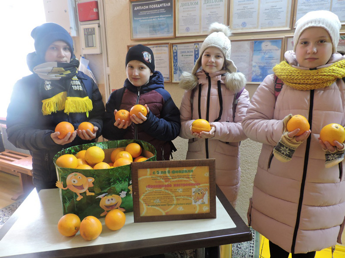 Каждый день в школе проходит какое-то мероприятие в поддержку областной акции. Так, в течение месяца ребята будут мастерить синичники и скворечники, которые после передадут в Вилейский лесхоз. Продолжили учащиеся и сбор вторичного сырья, только за два дня ими было собрано 942 килограмма макулатуры и 130 килограммов стеклобоя. А 5 и 6 февраля в школе прошла акция «Оранжевое настроение». Принять участие в ней могли все желающие, положив «апельсинку-витаминку» в корзину в фойе школы. За 2 дня школьники собрали около 100 апельсинов, которыми угостили ребят в детском отделении больницы и воспитанников ЦКРОиР.