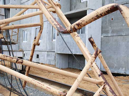 В ходе выполнения работ по проверке исправности башенного крана на строительном объекте перед началом смены машинистом крана был произведен подъем стрелы до упора в монтажную стойку. При этом произошли местные деформации верхнего пояса стрелы крана. Не убедившись в отсутствии повреждений стрелы крана машинист продолжил манипуляции по проверке работы механизмов и исправности приборов безопасности крана. При подъеме контрольного груза (загрузка крана по данным расшифровки информации с регистратора параметров работы крана составила 82%) произошла деформация корневой и следующей за корневой секций стрелы с изгибом и частичным разрушением металлоконструкций указанных секций.