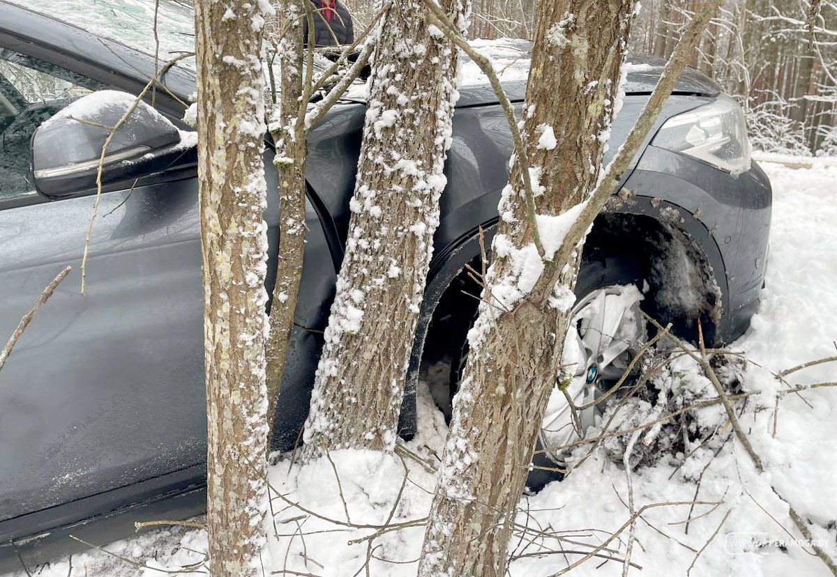 Житель Минска на «БМВ» попал в ДТП под Вилейкой. На 4-м километре автодороги Шиловичи-Родевичи автомобиль занесло.