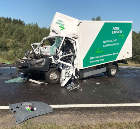 Водитель большегруза поворачивал на полосу движения. Водитель Ford двигался по своей полосе и попытался уйти от столкновения, но врезался в заднюю часть фуры. В результате аварии пассажирка Ford получила телесные повреждения и была доставлена в больницу.