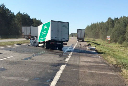 По информации УВД Миноблисполкома, в Борисовском районе на 438 км трассы М1 вблизи деревни Большая Ухолода 5 сентября около 8 утра произошло ДТП. Фура с полуприцепом столкнулась с грузовиком Ford.