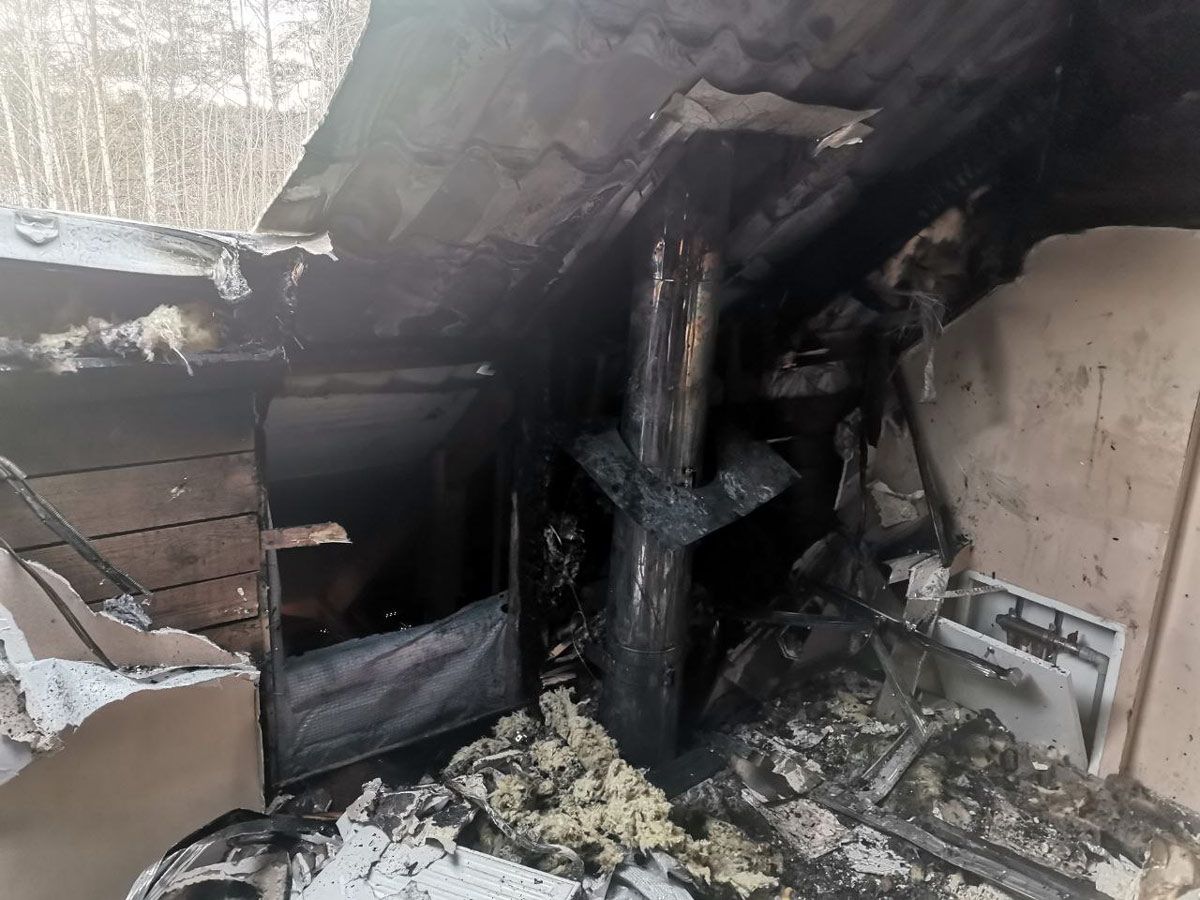 По факту пожара проводится проверка. Рассматриваемая версия причины возникновения пожара – нарушение правил монтажа печей, теплогенерирующих агрегатов и устройств (отсутствие противопожарной разделки трубы дымохода отопительного котла).