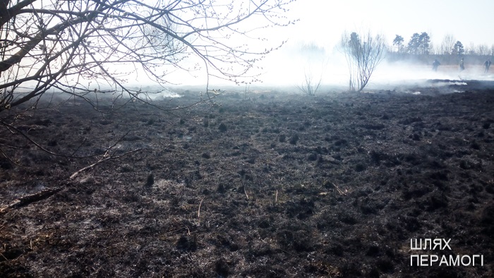На месте происшествия находились местные жители, которые подручными средствами пытались самостоятельно потушить горящую сухую растительность.