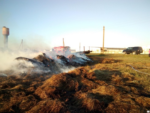 Дым сотрудники МЧС заметили, когда переезжали с одного поля на другой. Прибыв на место происшествия, они увидели, что происходит горение рулонов сена в прицепе, который буксировался трактором МТЗ, принадлежащий СУП «Восточный агро».