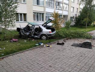 В Молодечно на ул. В. Гостинец 23 сентября около 5.45 20-летний местный житель, управляя автомашиной Citroen Xsara двигаясь в направлении г. Сморгонь, неправильно выбрал скорость движения. Водитель совершил наезд на бордюрный камень, расположенный справа по ходу движения, выехал за пределы дороги и совершил наезд на тумбу рекламного щита. В результате ДТП автолюбитель и пять пассажиров (22, 22, 23, 23 и 24 года) получили телесные повреждения различной степени тяжести.