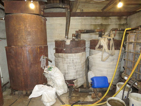 По предварительным оценкам, налаженная схема позволяла получать около 700 литров готового натурпродукта за одну гонку. Самогонщик тщательно скрыл своё производство от посторонних глаз. Да и место здесь весьма подходящее – посреди леса одна избушка на хуторе. Однако выдал нелегальное занятие бутлегера характерный резкий аромат – сивушный запах.