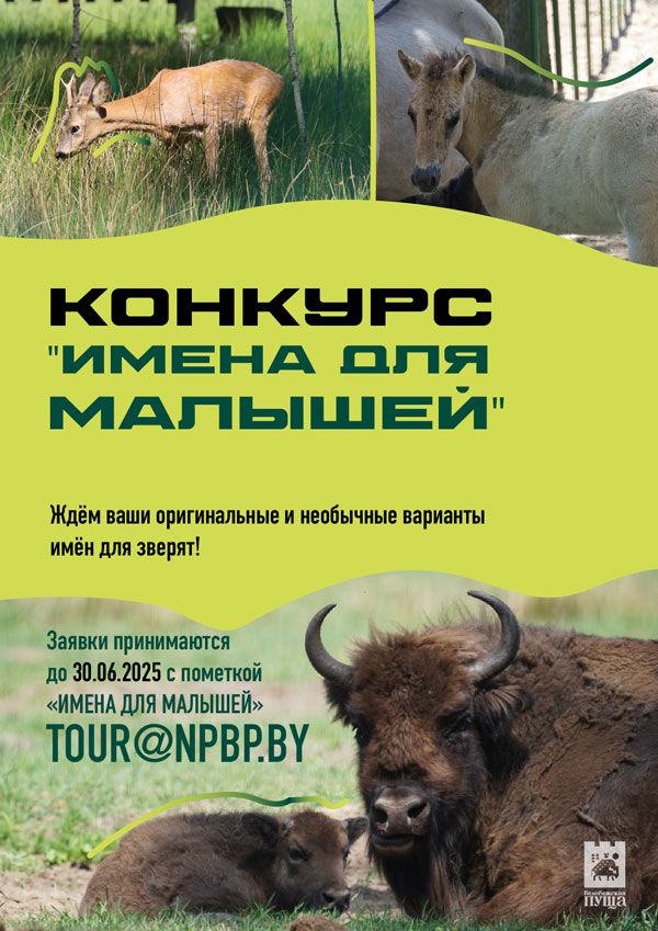 Все варианты оригинальных кличек, можно прислать нам на электронную почту tour@npbp.by до 30 июня 2025 года, с пометкой «ИМЕНА ДЛЯ МАЛЫШЕЙ», а также указав своё ФИО, адрес и контактный номер телефона. Итоги будут объявлены 1 июля 2025 года.